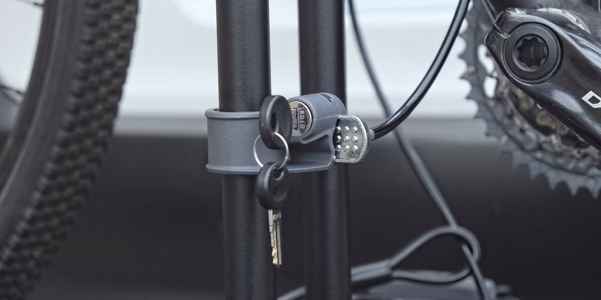 Du låser enkelt fast cykeln mot hållare och dessutom låser du fast hållaren mot bilens dragkrok så att du kan känna dig trygg att lämna bilen oövervakad med cykeln monterad bakpå.